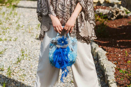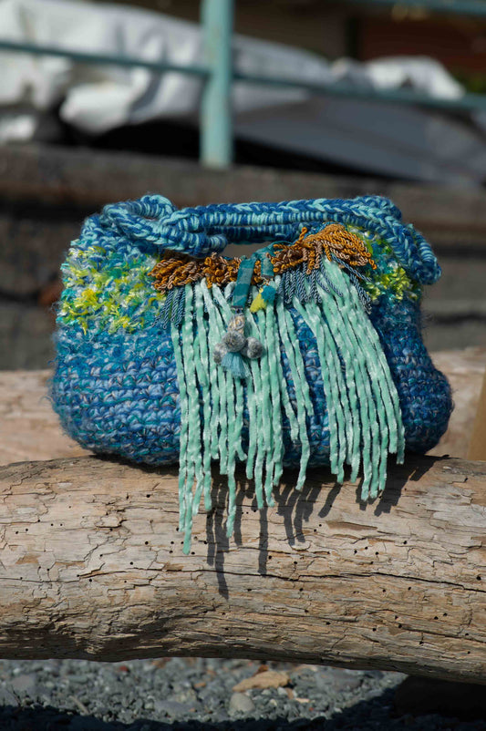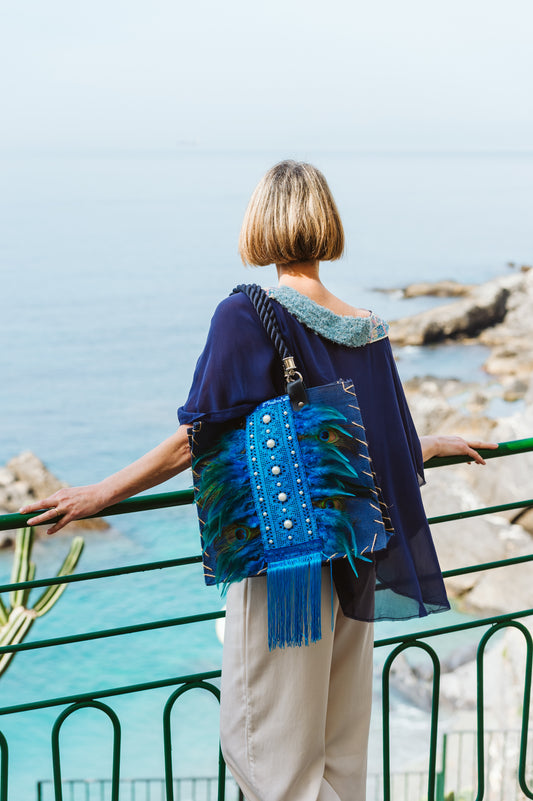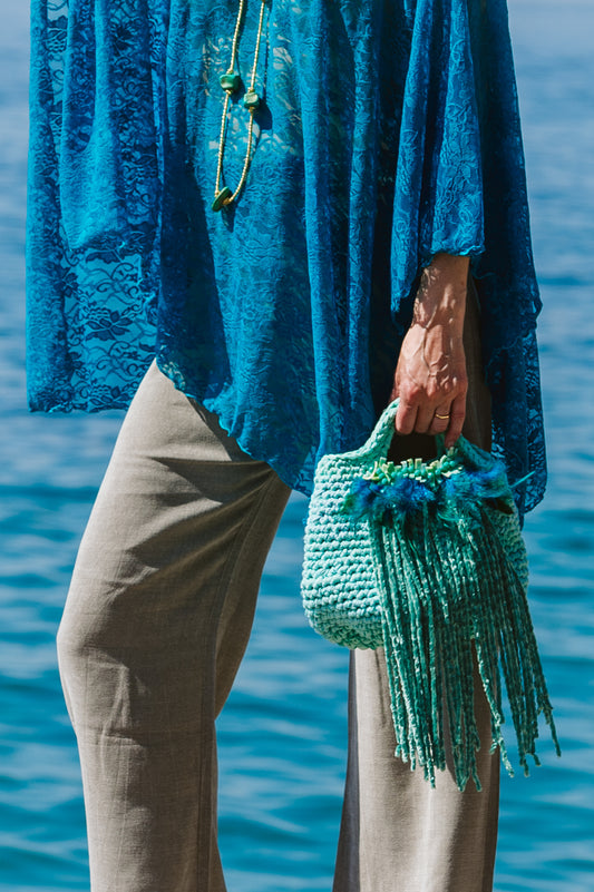 Borsa crochet azzurra con frange - Crochet light blue handbag with fringes