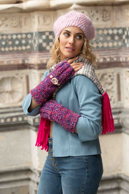 Berretto in lana biologica grigia e bouclè rosa - Grey biologic and pink bouclè wool hat
