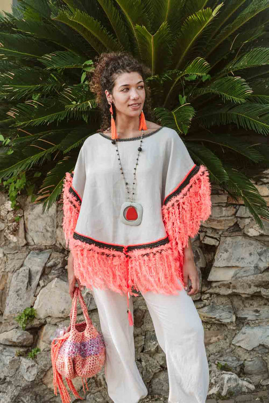 Borsa juta bicolor con decorazioni - Jute two-tone handbag