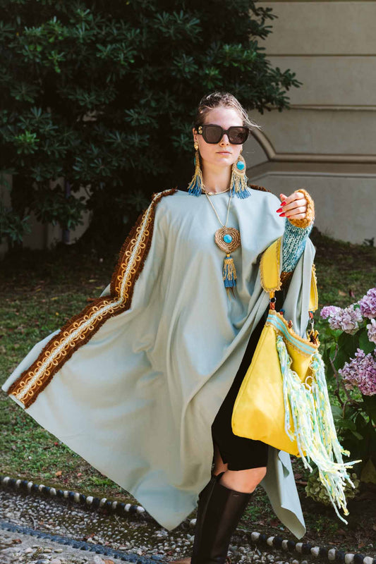 Borsa in panno di lana azzurro - Light blue woolen cloth bag