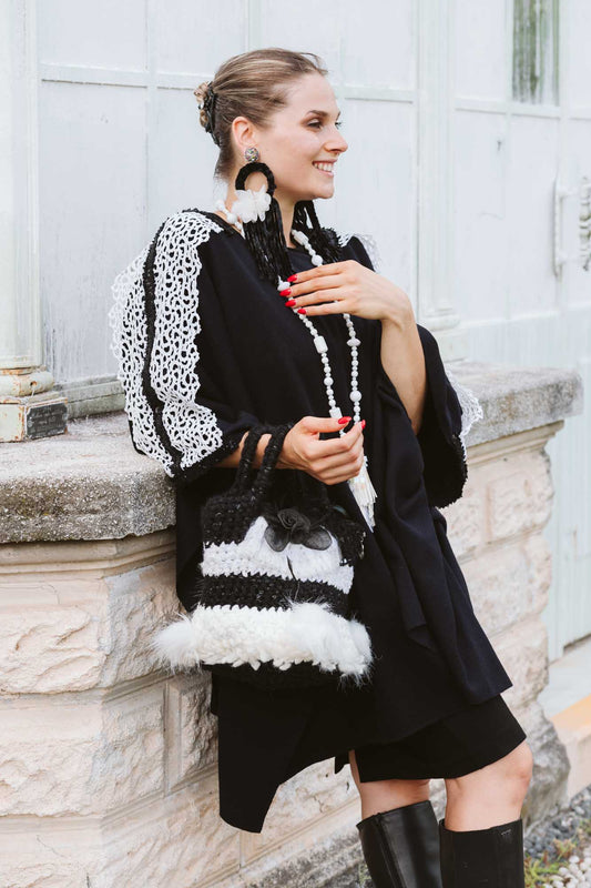 Borsa crochet con fiori - Handmade crocheted bag with flowers