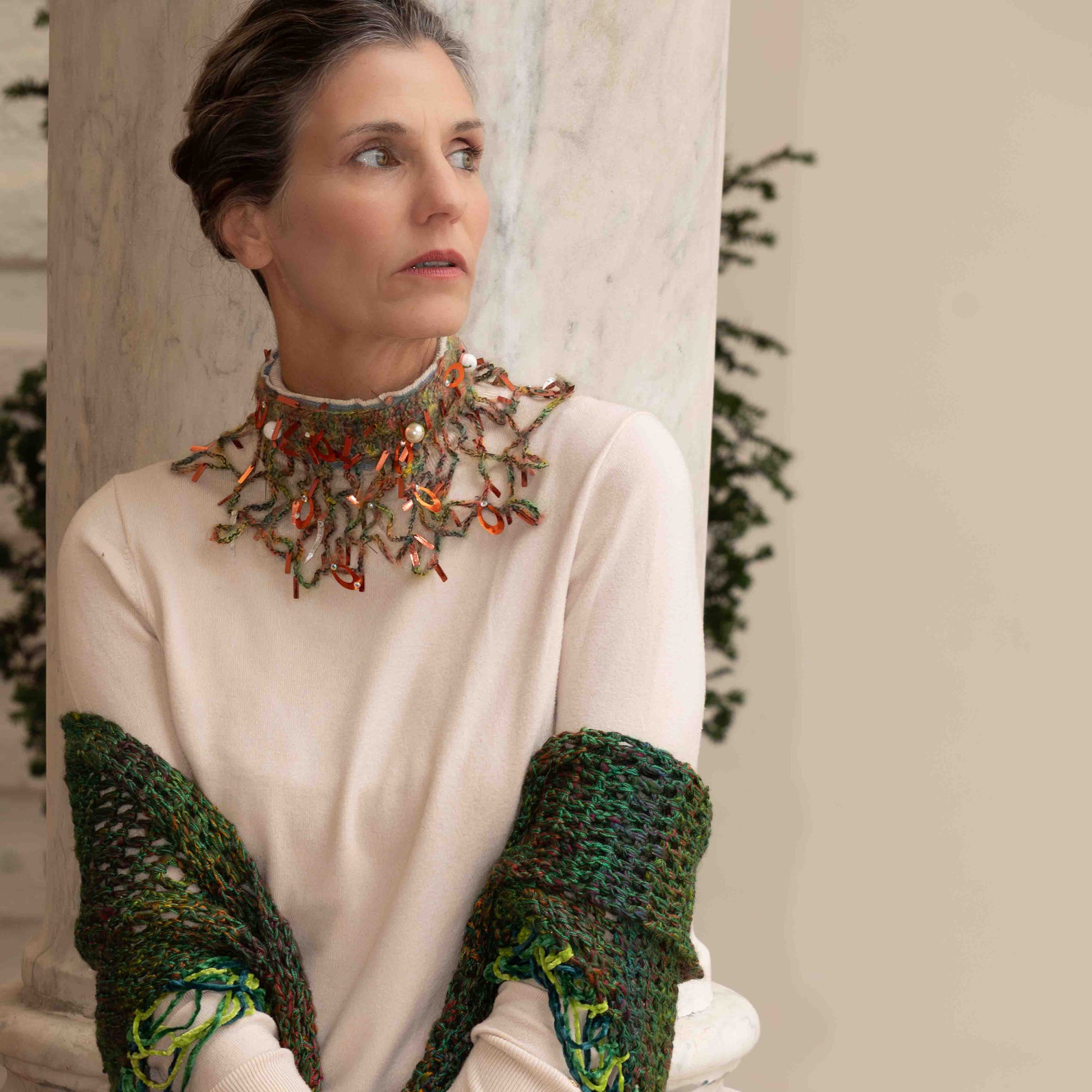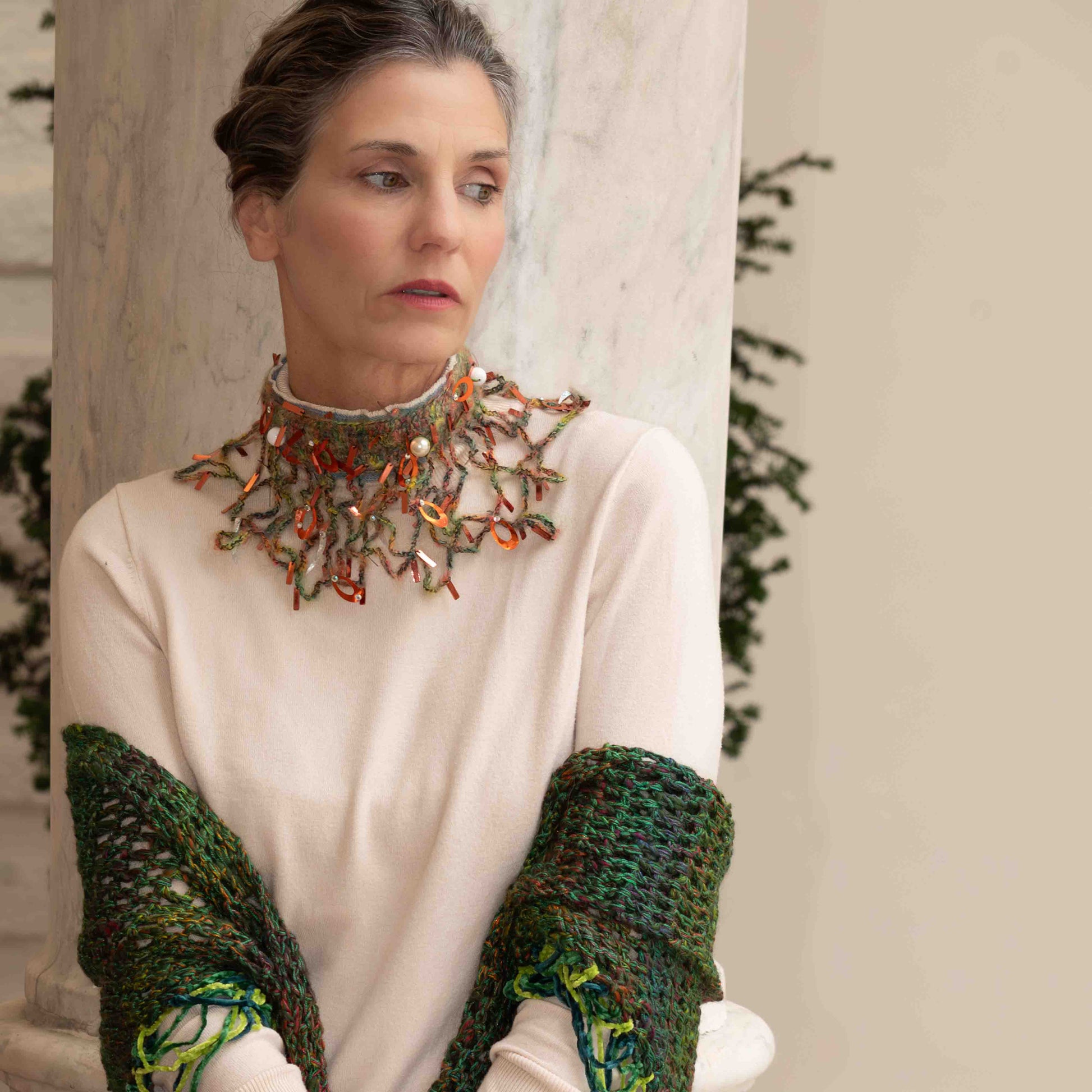 Collare gorgiera in jeans e mohair - Ruff necklace in denim and mohair