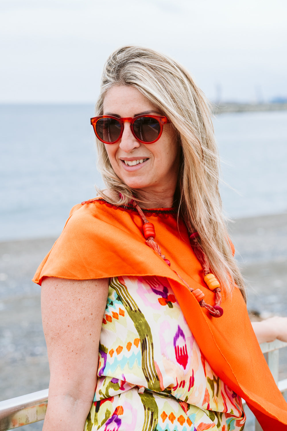 Poncho in cady lucido color arancione - Brighted orange cady poncho