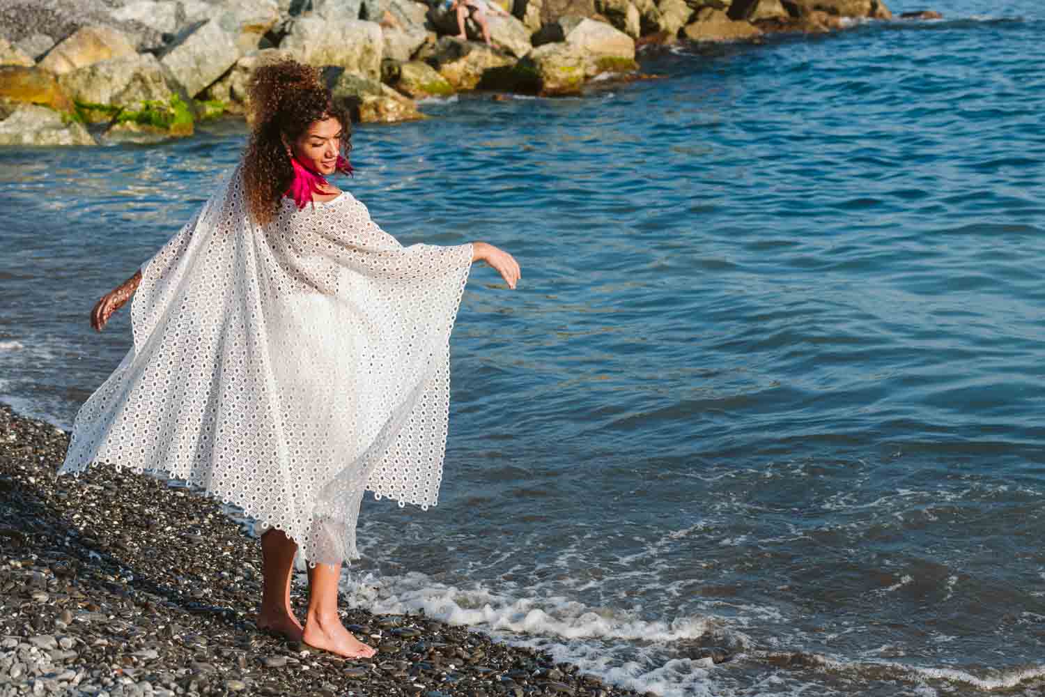 Ampio poncho in pizzo traforato bianco. Pezzo unico.