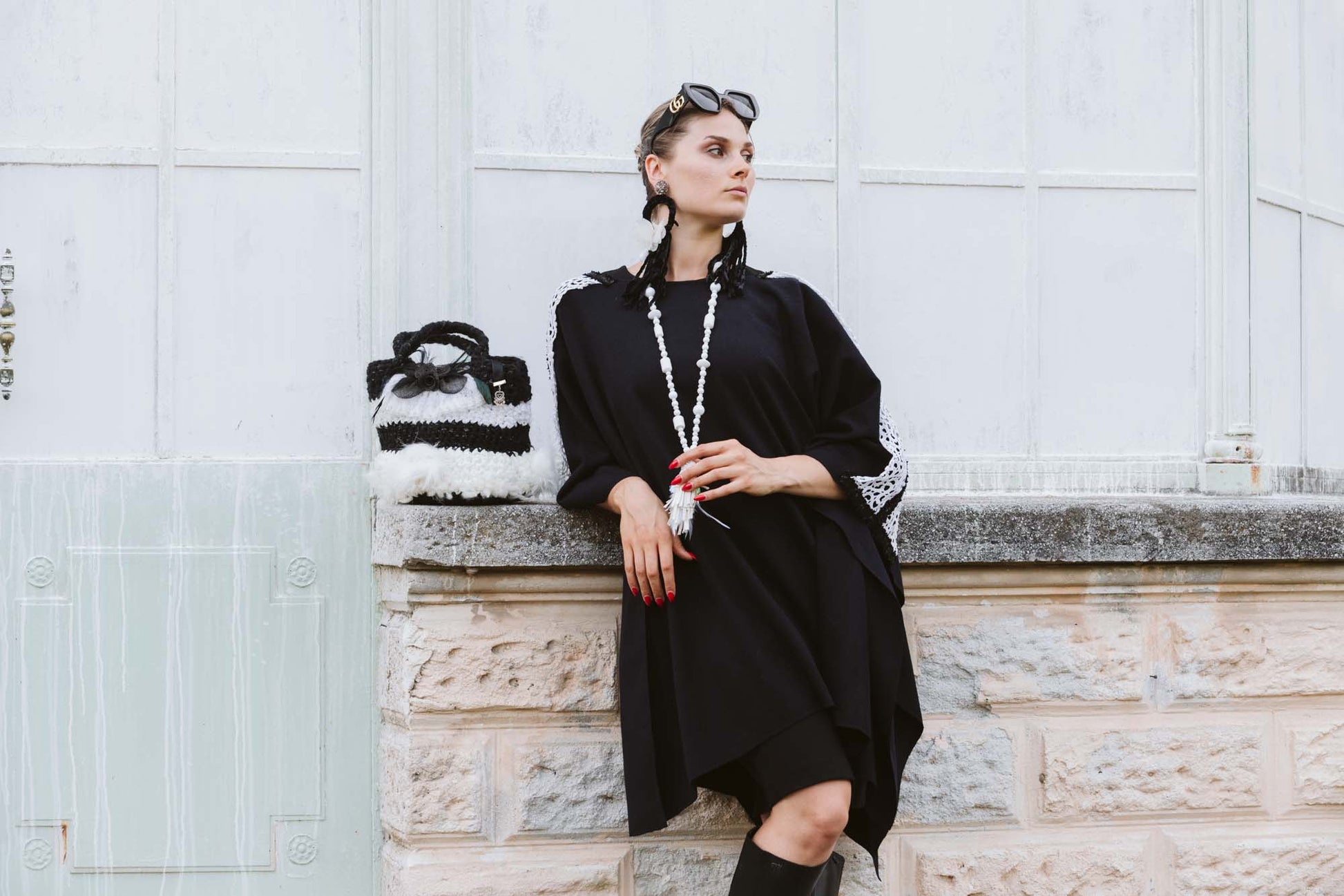 Poncho in panno di lana nero - Black woolen cloth poncho