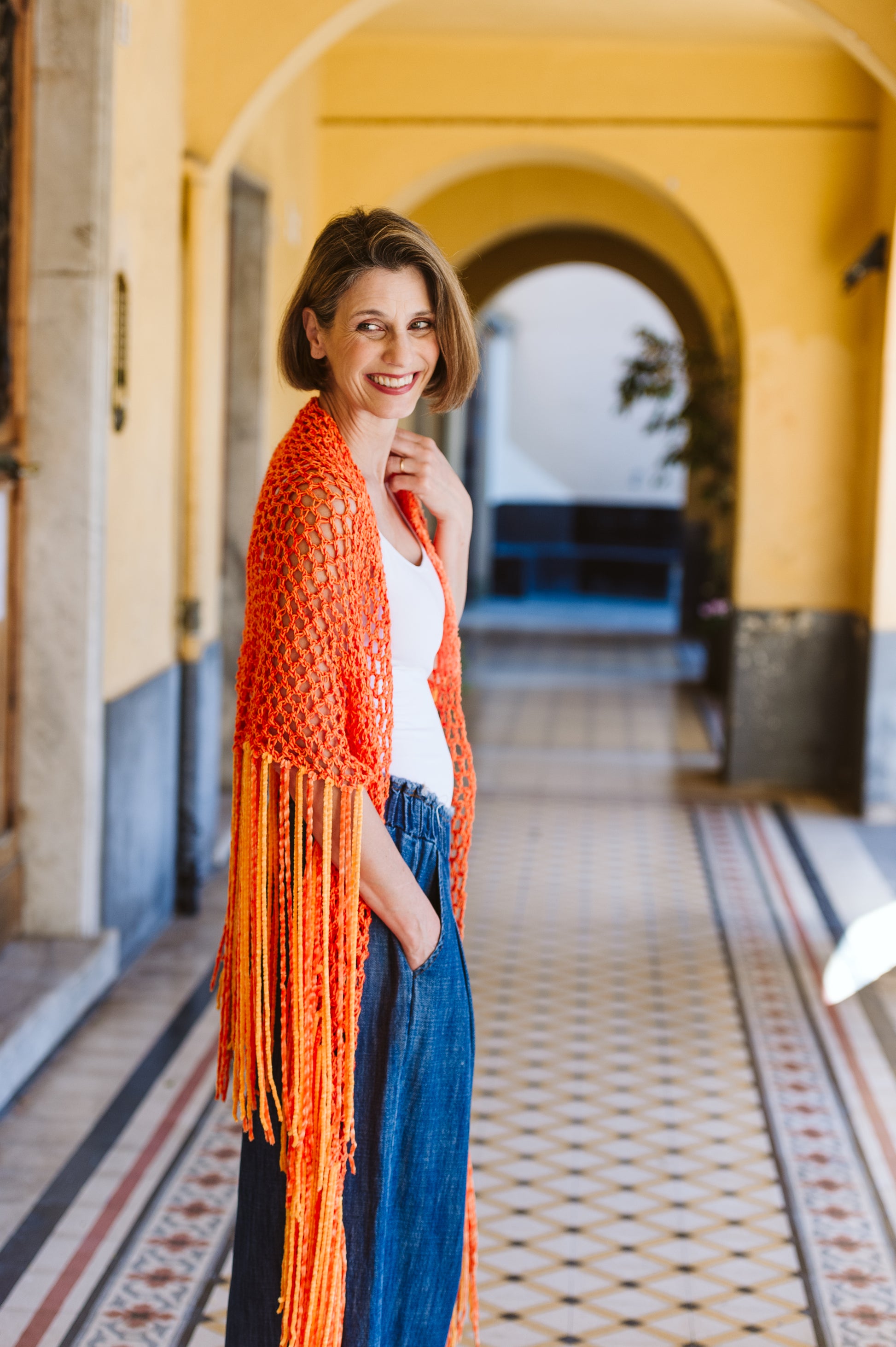 Scialle arancione lavorato a crochet - Oorange yarns crocheted shawl