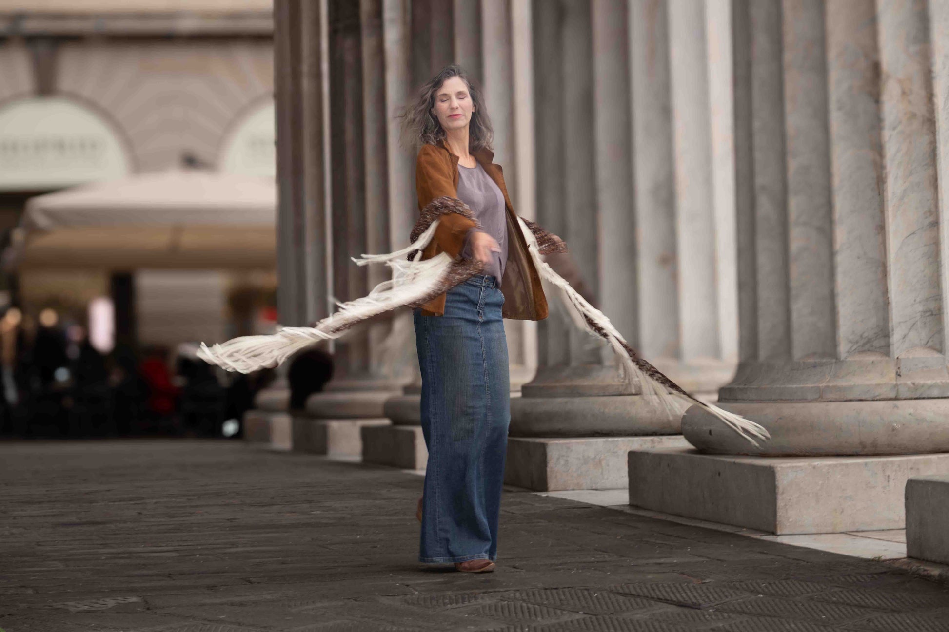 Scialle in ciniglia e m/lana sui toni del marrone - Chenile and wool blended shawl in brown shades