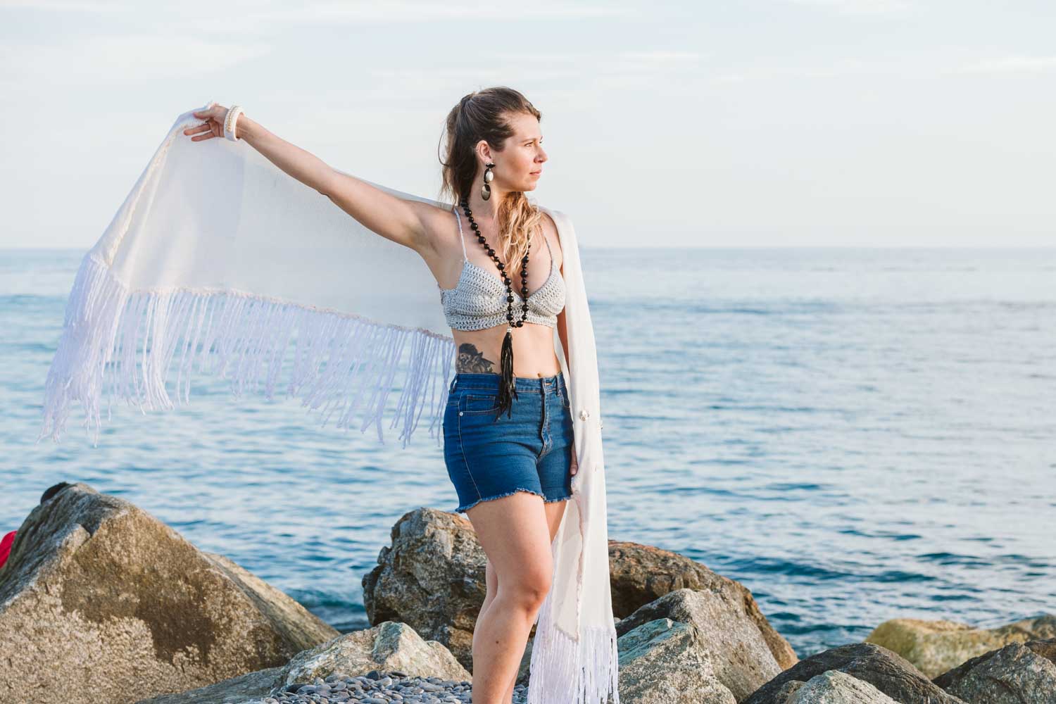 Scialle in viscosa bianco con frange - White viscose shawl with fringes