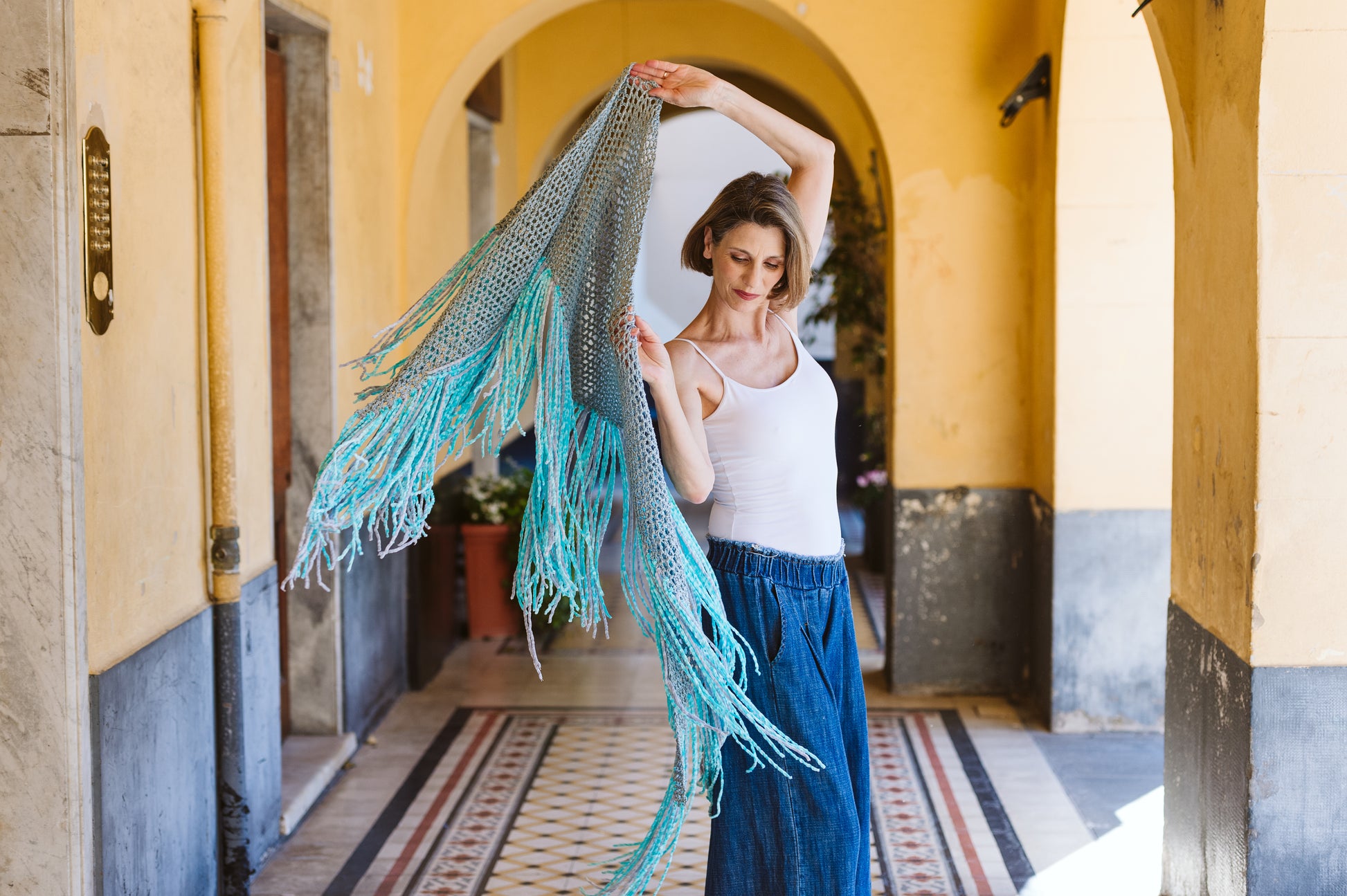 Scialle mohair seta con frange - Mohair/silk shawl with fringes